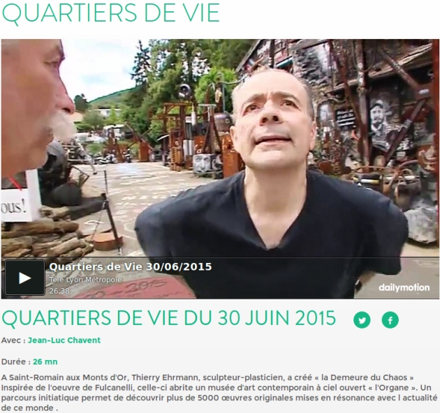 par thierry Ehrmann et Jean Luc Chavent "du Facteur Cheval à La Demeure du Chaos" avec un regard intime sur mes 30 ans de vie de sculpteur plasticien. ![]() Click to view video >>> / Cliquez l'image pour voir la vidéo >>> |