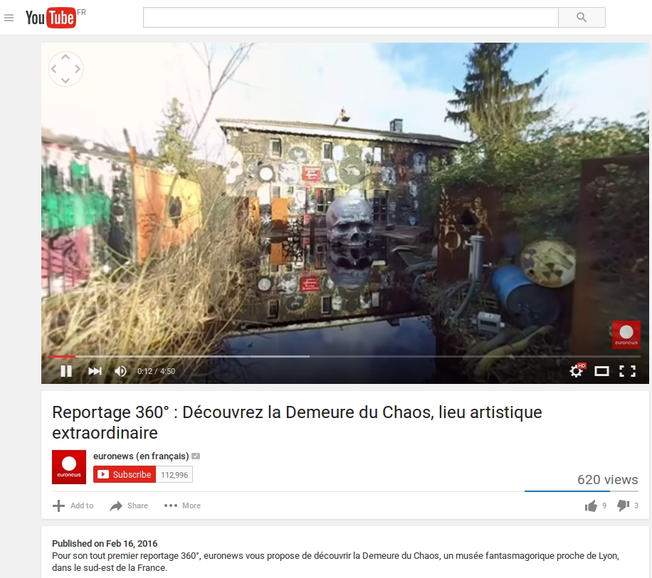 | Février 2016 : les vidéos 360° de la Demeure du Chaos/Abode of Chaos réalisées par Euronews ! Artprice Headquarters |
